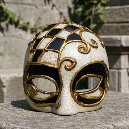 χειροποίητη μάσκα βενετσιάνικη μισό κεφάλι ανάγλυφη ασπρόμαυρη μισό κεφάλι κρακελέ
