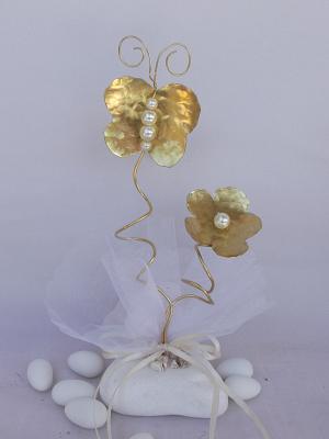 Μπομπονιέρα μπρούτζινη πεταλούδα σφυρήλατη 4 Χ 4.5 με πέρλες μαργαρίτα σε βότσαλο Θάσου 4 – 7 Χ 2 εκ ημιπολύτιμους λίθους ύψος 17 εκ. Η τιμή αφορά σκέτο το διακοσμητικό στολίδι μπιμπελό (δυνατότητα επιλογής σε Χρώματα επίσης μπορεί να προστεθεί το μονόγραμμα σε μέταλλο με επιπλέον κόστος 0.60 και δέσιμο μπομπονιέρας με οργάντζα 5 κουφέτα χατζηγιαννάκη και 2 κορδελάκια 0.50 οποιεσδήποτε αλλαγές σημειώστε στις Επιπρόσθετες πληροφορίες στην ολοκλήρωση της παραγγελίας η επικοινωνήστε απευθείας με το κατάστημα) ελάχιστη παραγγελία 30 τμχ.