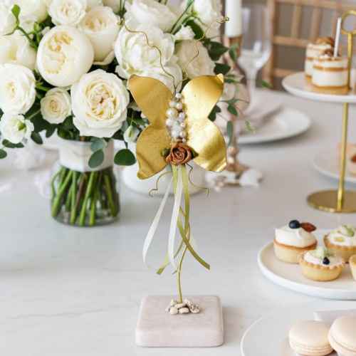 χειροποίητη μπρούτζινη πεταλούδα στολισμένη με χάντρες γκλίτερ σατέν λουλούδι σε τετράγωνη βάση βότσαλο ύψος 16 εκ η μέτρηση αφορά το διακοσμητικό χωρίς το μεταλλικό σύρμα [κεραίες] ο μπρούτζος είναι προστατευμένος με ειδικό βερνίκι κοσμηματοποιίας και δε οξειδώνεται Η τιμή αφορά σκέτο το διακοσμητικό στολίδι μπιμπελό (δυνατότητα επιλογής σε Χρώματα επίσης μπορεί να προστεθεί το μονόγραμμα σε μέταλλο με επιπλέον κόστος 0.60 και δέσιμο μπομπονιέρας με οργάτζα 5 κουφέτα χατζηγιαννάκη και 2 κορδελάκια 0.50 οποιεσδήποτε αλλαγές σημειώστε στις Επιπρόσθετες πληροφορίες στην ολοκλήρωση της παραγγελίας η επικοινωνήστε απευθείας με το κατάστημα) ελάχιστη παραγγελία 30 τμχ.