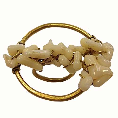 χειροποίητο δαχτυλίδι ανοιγόμενο ορείχαλκος σφυρήλατος κύκλος με δεμένους ημιπολύτιμους λίθους κοράλλια λευκά 4 εκ.