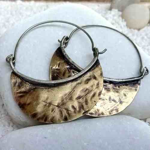 Χειροποίητα σκουλαρίκια αρχαιοελληνικό στυλ σφυρήλατος μπρούτζος μισός κύκλος με αλπακά χρυσό, χαλκός αρζαντό χάλκινο , αρζαντό μπρούτζος ασημί 5,5 Χ 4 εκ.